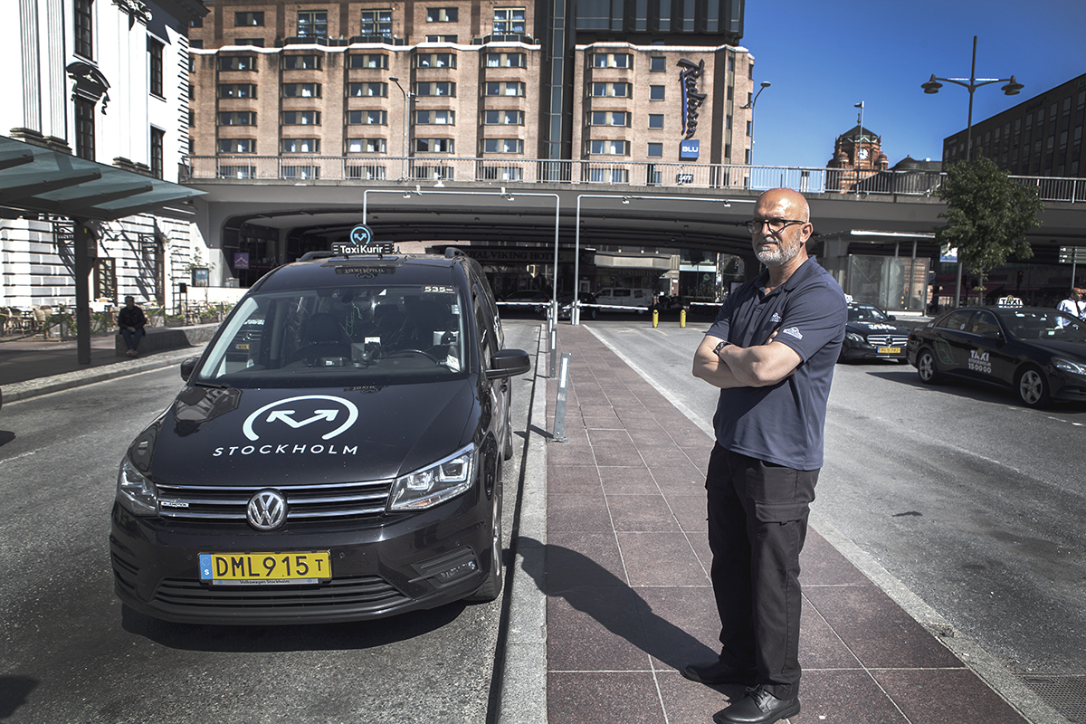 Olivera Pobra och Saied Tagavi går mellan bilarna och pratar med chaufförerna. Tagavi känner flera av dem sedan tidigare, han är också chaufför på ett åkeri som kör för Taxi Stockholm. Det finns tid att snacka. Minuterna är många, och långa, mellan kunderna.