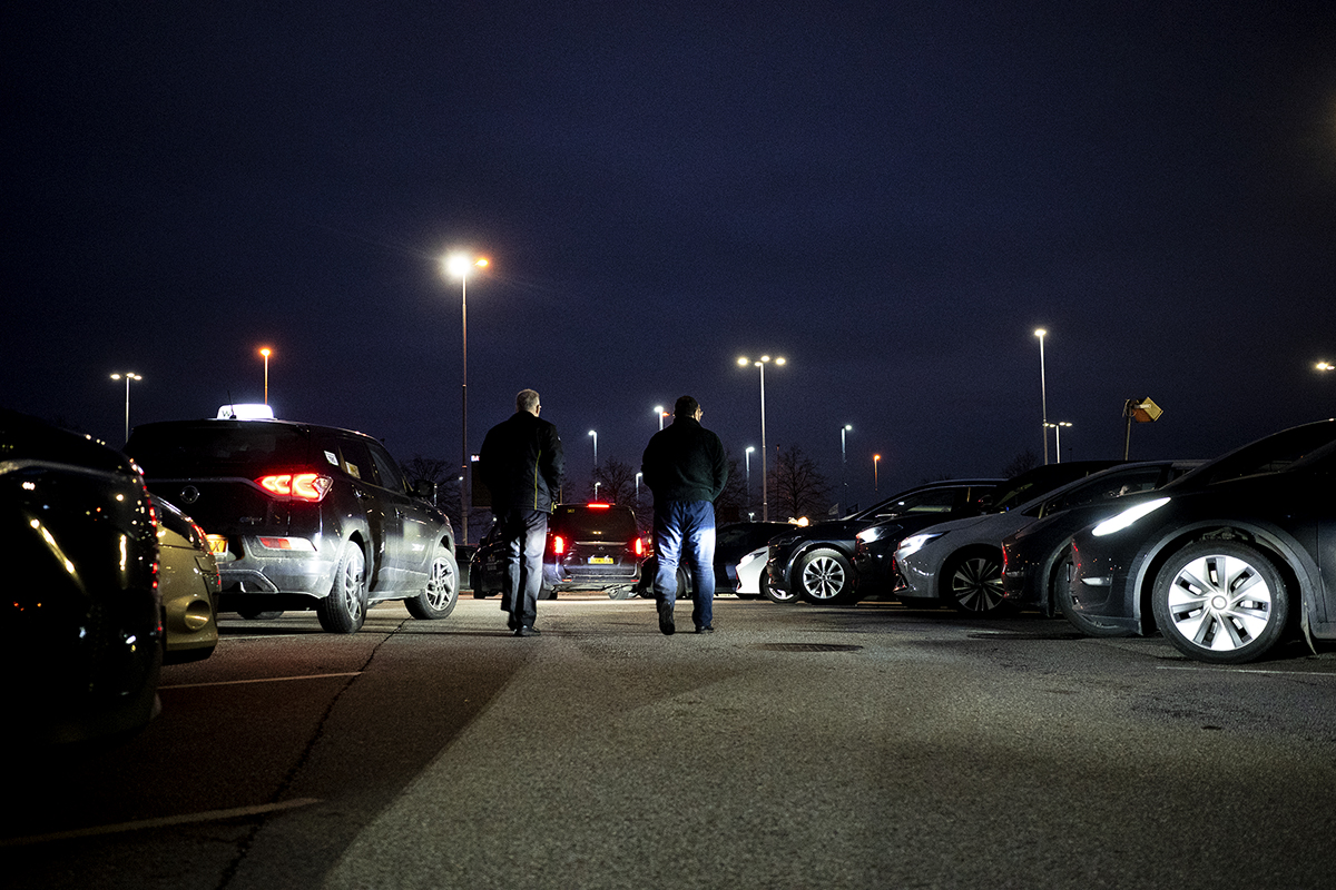 Nya chaufförer kommer hela tiden in, hejar på bekanta och byter några ord. Kollar på den stora digitala tavlan som visar hur många bilar som står på tur och när det är dags att köra fram till flygplatsen.
