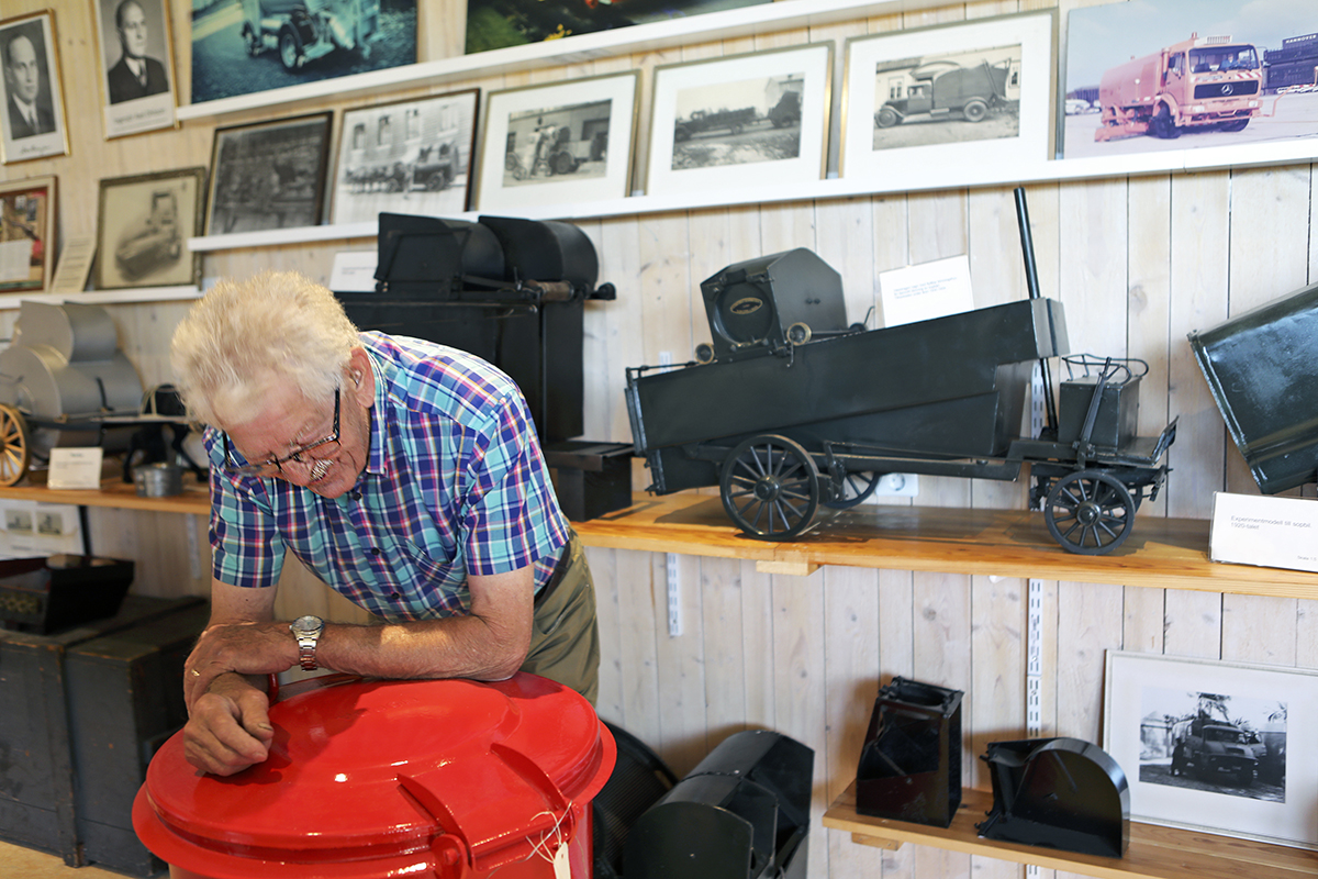 – Företaget började tillverkning med latrin- och sopkärl, de allra tidigaste bars på ställning av två gubbar. På 1920-talet fortsatte det med vagnar för hämtning, vagnar som drogs av hästar, berättar Allan.