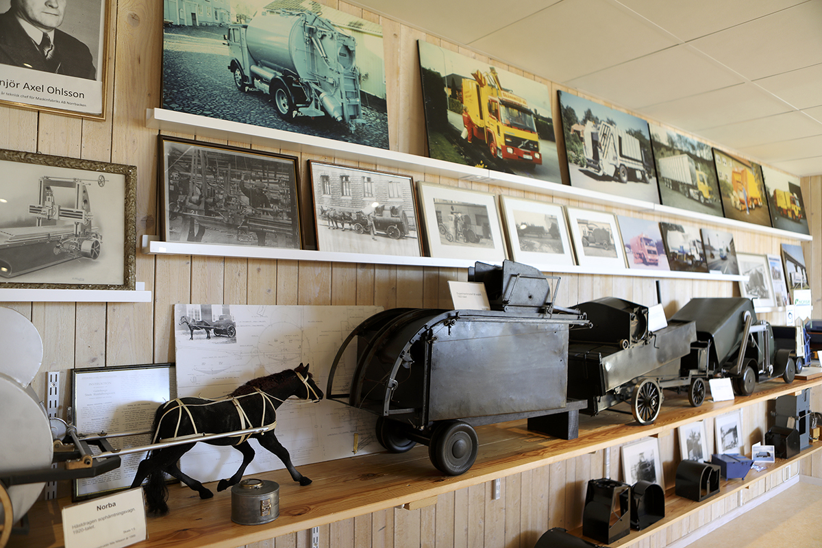 Det hästdragna ekipaget för dammfri tömning, första sopbilarna med komprimering, latrinkärl och modernare fordon under palmer – miljöarbetets utveckling lyfts på museet i Mönsterås kommun.