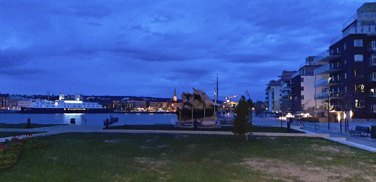 ”Bilden är tagen i juni vid inloppet till Sundsvall. Stora hamnkajen. Stockholmskajen kallas den också. Eller kort och gott Norra hamnen. Till vänster ligger en hotellbåt och Gustav Adolfs kyrka syns långt bak i bilden”, skriver Jan-Erik Lindblom.