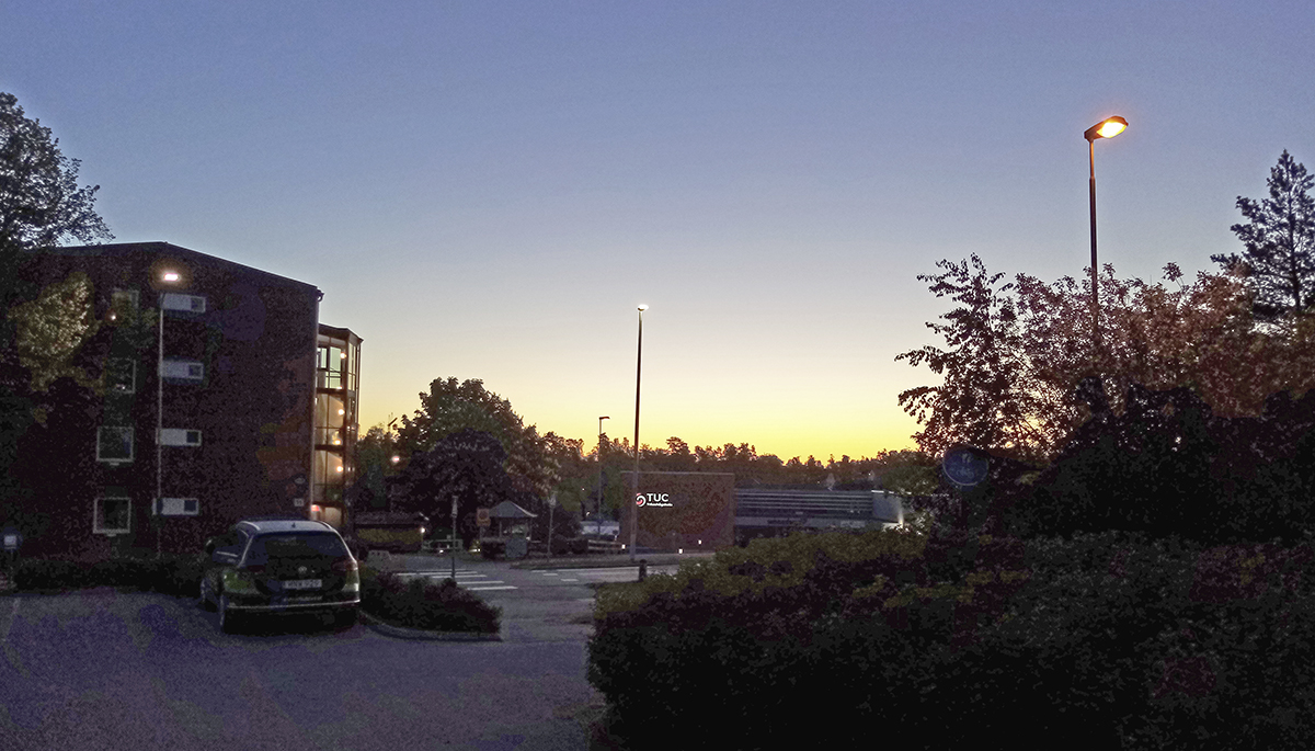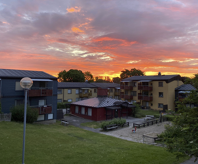 ”Bilden är tagen precis utanför Bodafors en tidig morgon när jag var på väg hem. Jag fick stanna och släppa förbi gångtrafikanten (en trana).” Foto: Angelica Laago TrolleSoluppgång över Ydrevägen i Tranås. Foto: Linda Bergkvist AspringMarie Lindgren fotograferade soluppgången i Sandviken.”Staden vaknar och jag cyklar mot stranden efter jobbet. Här står min släkting och väntar på mig, så att vi kan njuta av sommaren”, skriver fotografen Rose Mary Perumattil Jose från Halmstad.