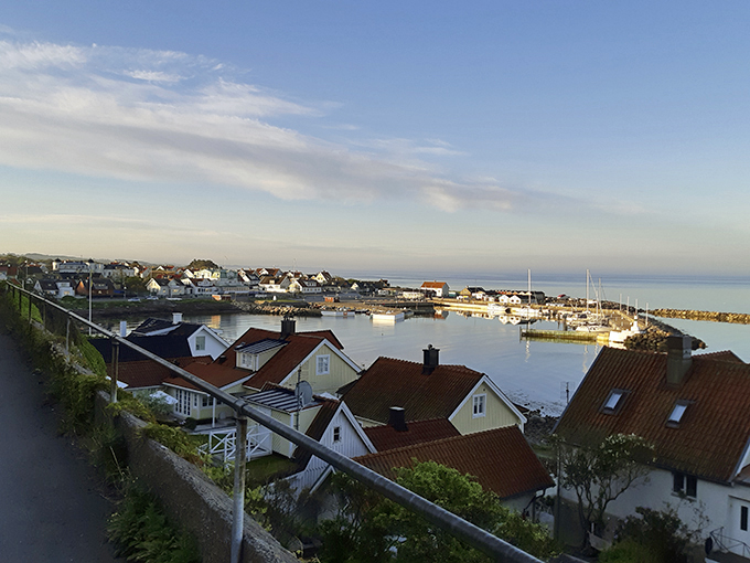 ”Mölle hamn i sol medan resten av Mölle fortfarande ligger i skugga bakom Kullaberg”, skriver Anders Strömbäck i Höganäs.