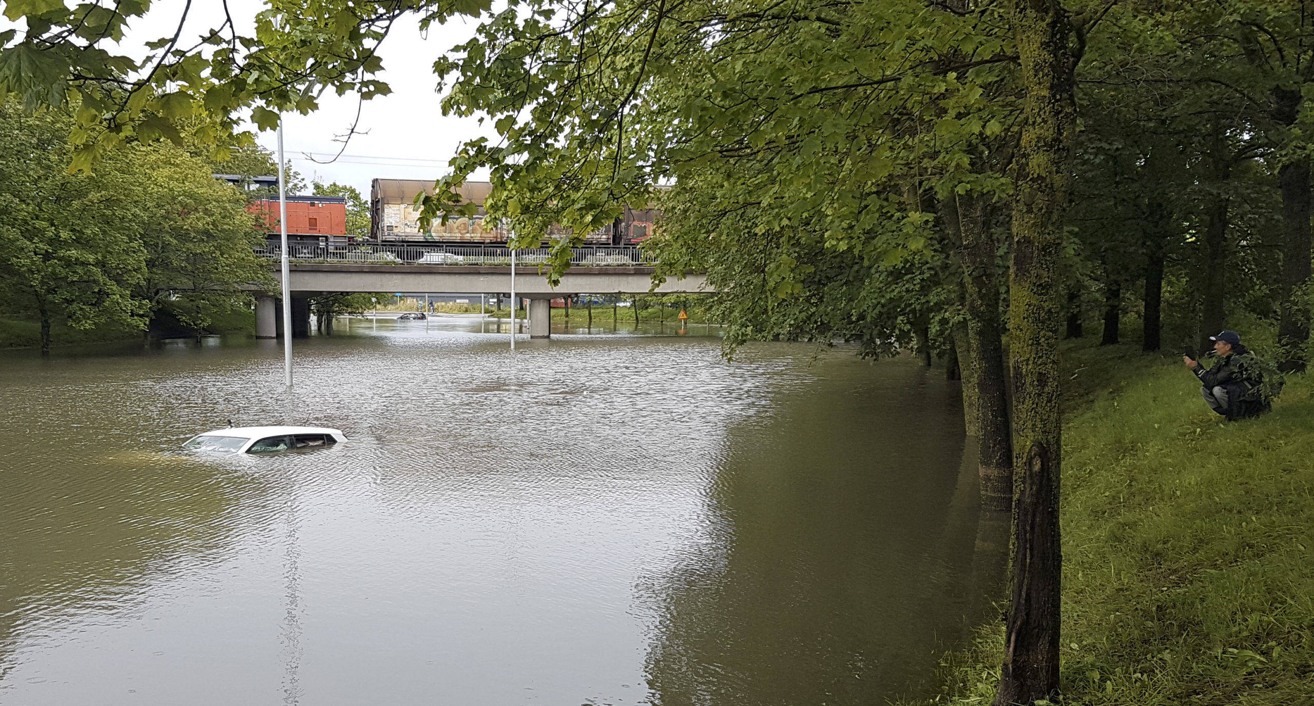 – Det var en uppmaning att hålla sig inne. Men i morse blåste de av VMA, och en hel del tänkte att det då nog gick att köra bil, men det gick ju inte. Det är meterhögt vatten under många viadukter, säger Niclas Sandström.