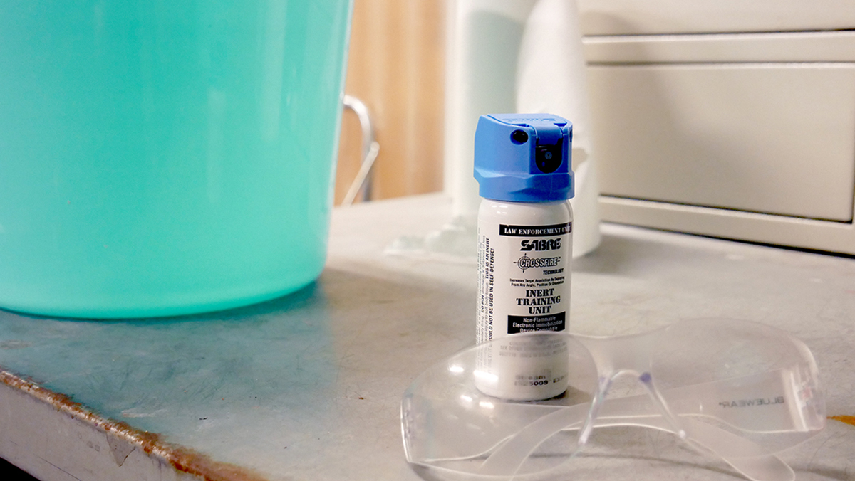 Just i dag utbildar han en grupp säkerhetsvakter i användningen av OC-sprej, även känt som pepparsprej.