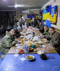– Jag och min kollega Mattias satt och åt borsjtj med henne och militärerna. De bjuder alltid på soppa, en sorts pyttipanna lagad av vad de har. Inte alltid rödbetor. Hela tiden hörde vi explosionerna i Bachmut, men ukrainarna reagerade inte.