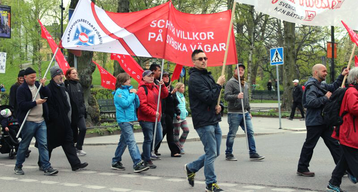 Omkring 5 000 demonstranter från stora delar av Europa samlades vid lunchtid på onsdagen i Bryssel för att protestera mot social dumpning i transportsektorn. Med visselpipor och plakat i händerna uppmanade de kandidaterna i EU-valet att ställa upp i kampen för schysta transporter.