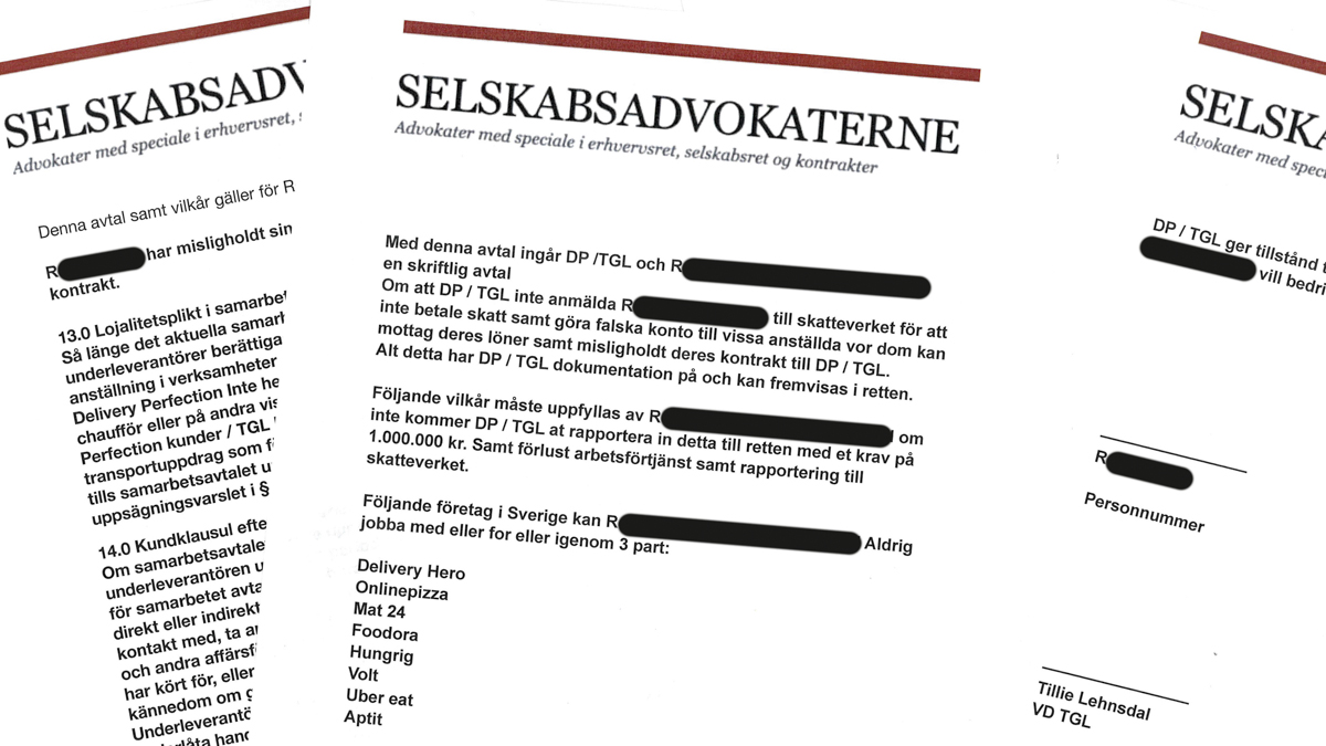 Företaget T Group logistics kör ut tusentals matportioner varje vecka för Hungrig.se. Nu har företaget hamnat i blåsväder genom att skicka ett avtal som liknar utpressning till en underentreprenör i Umeå. Avtalet är illa skrivet, med en logga stulen från en känd dansk advokatfirma.