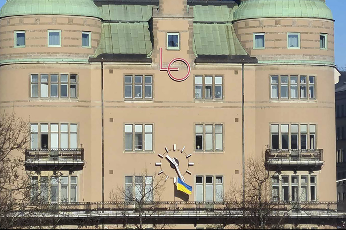 På LO-borgen vid Norra Bantorget i Stockholm har Ukrainas flagga hissats vid urtavlan. En påminnelse om den galna tid vi upplever och att fler människor ständigt dör av det orättfärdiga kriget mot Ukraina.
