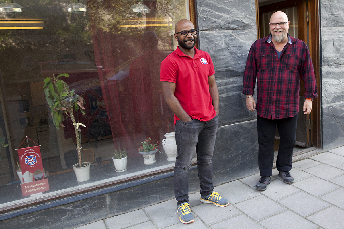 Tidningsbudssektionen. På tidningsbudens fackexpedition i Stockholm hittar vi fackrepresentanterna som helst vill införa stämpelklocka i branschen.