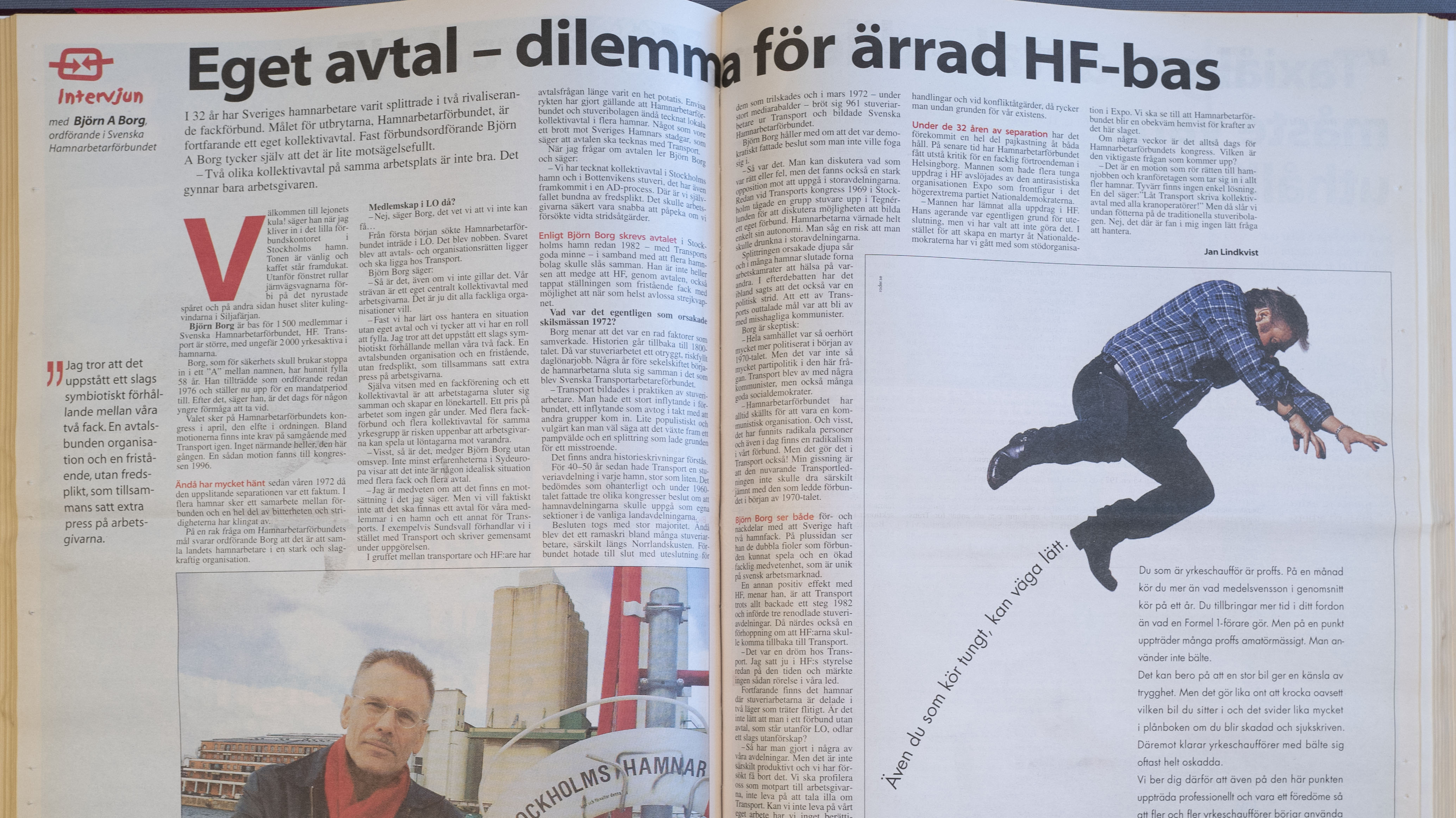 Om mindre än två dygn kan en ny konflikt bryta ut i hamnarna. Vad vill Hamnarbetarförbundet (HF)? Är målet dubbla kollektivavtal och dubbla fackföreningar för arbetare på en och samma arbetsplats? Så här sa HF:s mångårige ordförande Björn A Borg i en stor intervju i Transportarbetaren år 2004. Texten är något kortad, i övrigt återges den ordagrant.