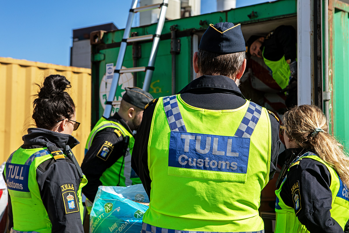 Hamn. I dag har 60 containrar kommit in. Den mobila scannern är på plats. Tullarna och hunden Sadie har börjat ett pass. Både färjehamnen och containerhamnen i Helsingborg ligger i topp när det gäller beslag av narkotika i Sverige.
