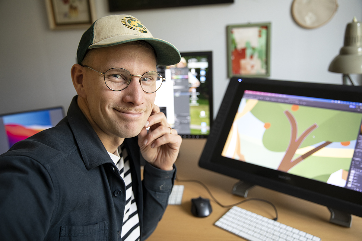 Kreativ. Mattias Källs människor hittar sedan länge vägen in i Transportarbetaren. Tidningens ofta anlitade illustratör utforskar i sin konst också vårt förhållande till varandra och till naturen – och är sedan årsskiftet utvecklingsledare för bild och form i Region Örebro.