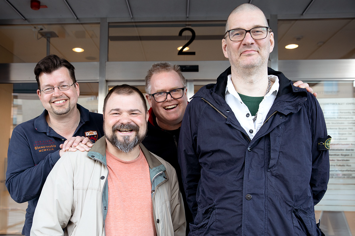 Thomas Belvén, Jan Sehlin, Peter Strålind och Magnus Lundberg utanför Folkets hus i Solna. Emil Blomqvist och Joakim Björkstedt sitter också i styrelsen, men är inte med på bild.