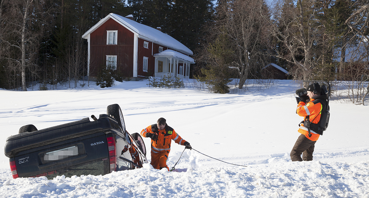 Arbetsplats: Bärgningsbil. Bil på taket, långt ute i snön! Nix, det blev inte vinterns lugnaste torsdag för bärgarna i Umeå. Kända från tv.