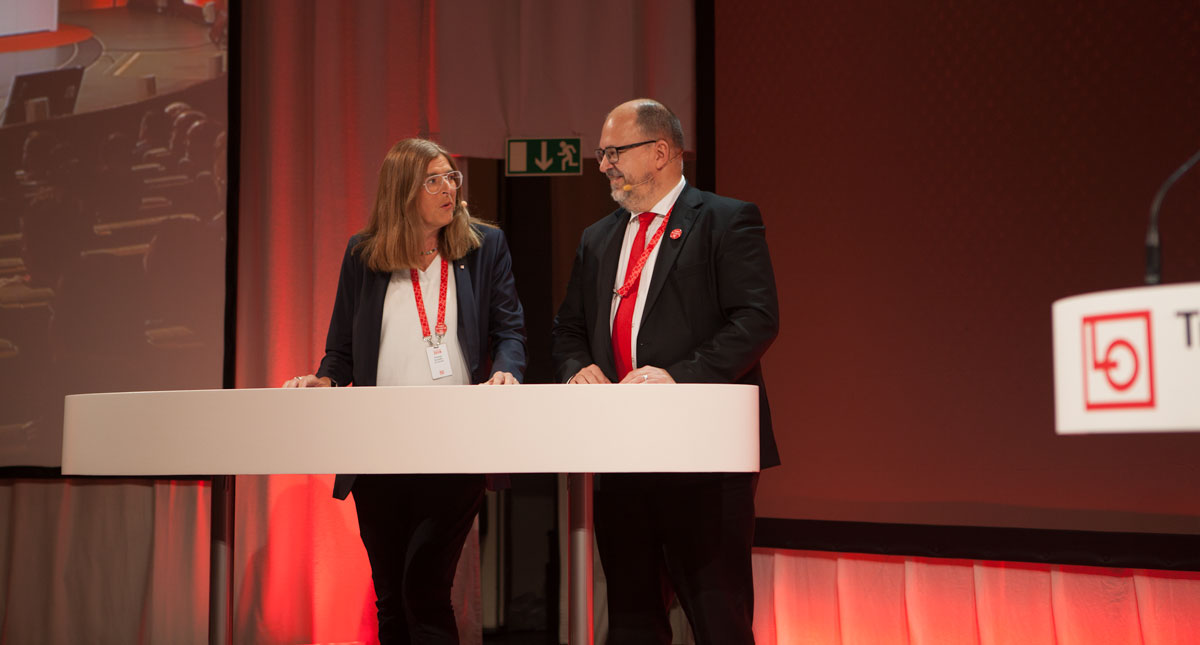 – Vi ska genomföra en halv miljon samtal med våra medlemmar. LO har ett tydligt mål med en regering som bygger trygghet för vanligt folk, med vår egen svetsare som statsminister, sa Therese Guovelin, LO:s förste vice ordförande.