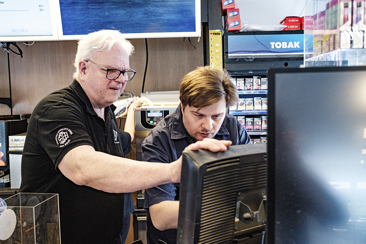 – Det är här folk träffas i Lunde. Det finns ett jättefint konditori vid älven, men det är bara öppet på sommaren. Så macken blir en naturlig mötesplats. Vi har en liten fikadel här. På vissa mackar kan det vara lite öde. Men här stannar folk till och tar sitt kaffe och fikar.