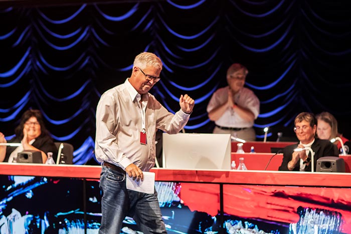Kongressen. Ja! Med acklamation valdes Tommy Wreeth till Transports förbundsordförande för kommande fem år på fredagseftermiddagen.