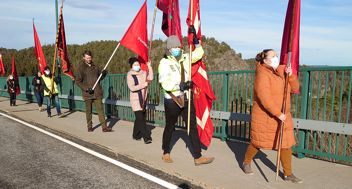 Han var fanbärare för Transport vid dagens manifestation. Den hölls i strålande vårsol på den gamla bron mellan de båda länderna, över Svinesund, som var E6-led fram till 2005 då den nya Svinesundsbron invigdes.