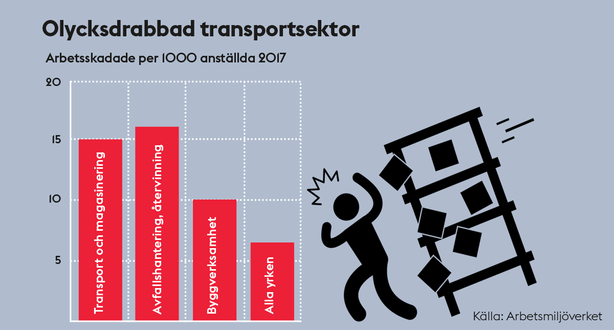 Arbetsmiljö. Transportjobb är de mest olycksdrabbade. Det visar statistik från Arbetsmiljöverket, Afa Försäkringar och Försäkringskassan.
