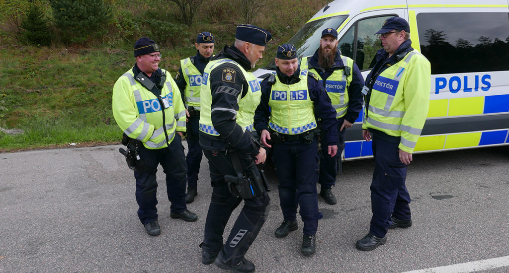I bilen, till vänster om Thunblad, sitter MC-polisen Tomas Bonn, som frågar sig varför vi i Sverige inte klarar av att hindra fusket på vägarna: