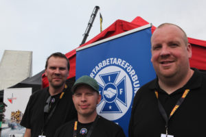 Tillsammans med avdelningsordförande, Joakim Carlsson, och medlemmen Kjell-Åke Ströberg, själv chaufför, stod de i Transporttältet på fredagen.