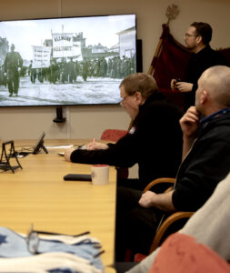 Valet omfattar både riksdag, kommun och region, påminner Patrik Persson. Vid varje kurs har han bett deltagna lyfta orosmoment i samhället eller på jobbet. Höjda drivmedelspriser som kan försvåra pendlingen till jobbet har tagits upp. När Transportarbetarens reporter hakar på miljöarbetarnas kurs kommer farorna med AI på tal och en sopgubbe poängterar: